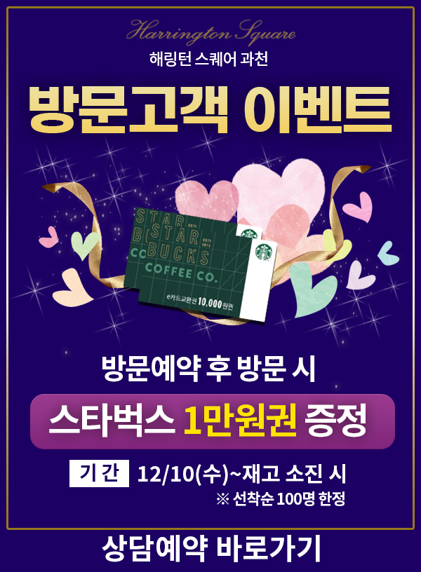 해링턴 스퀘어 과천 방문예약 고객의 개인정보를 수집합니다. 수집한 개인정보는 방문예약 이외의 목적으로는 사용하지 않으며, 아파트 모집 기간 완료 후 즉시 파기합니다. 개인정보의 수집 및 이용에 대한 동의를 거부할 수 있으며, 이 경우 방문예약 접수가 어려울 수 있습니다.
